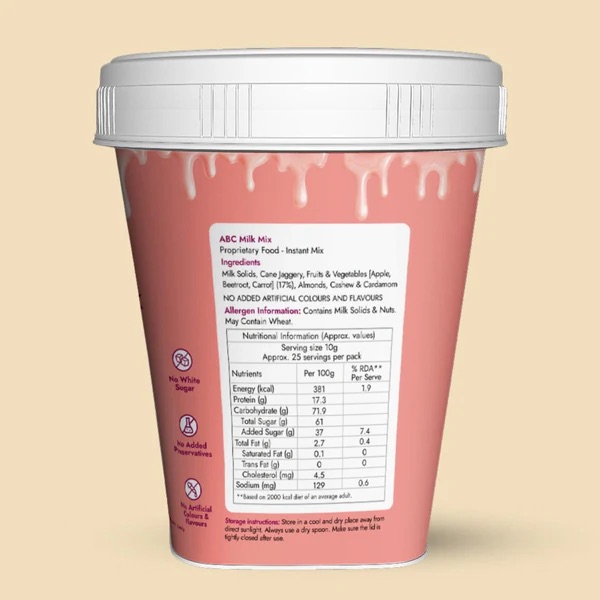 Prepared with carefully handpicked and best-quality apples, beetroots and carrots combined with the nuttiness of almonds and the creaminess of cashews, our recipe provides you with a rich energy source in the form of a milk powder without white sugar that will leave you feeling refreshed. A perfect sustainable choice for eco-conscious individuals- you can mix it with milk or refrigerate and serve it cold.
